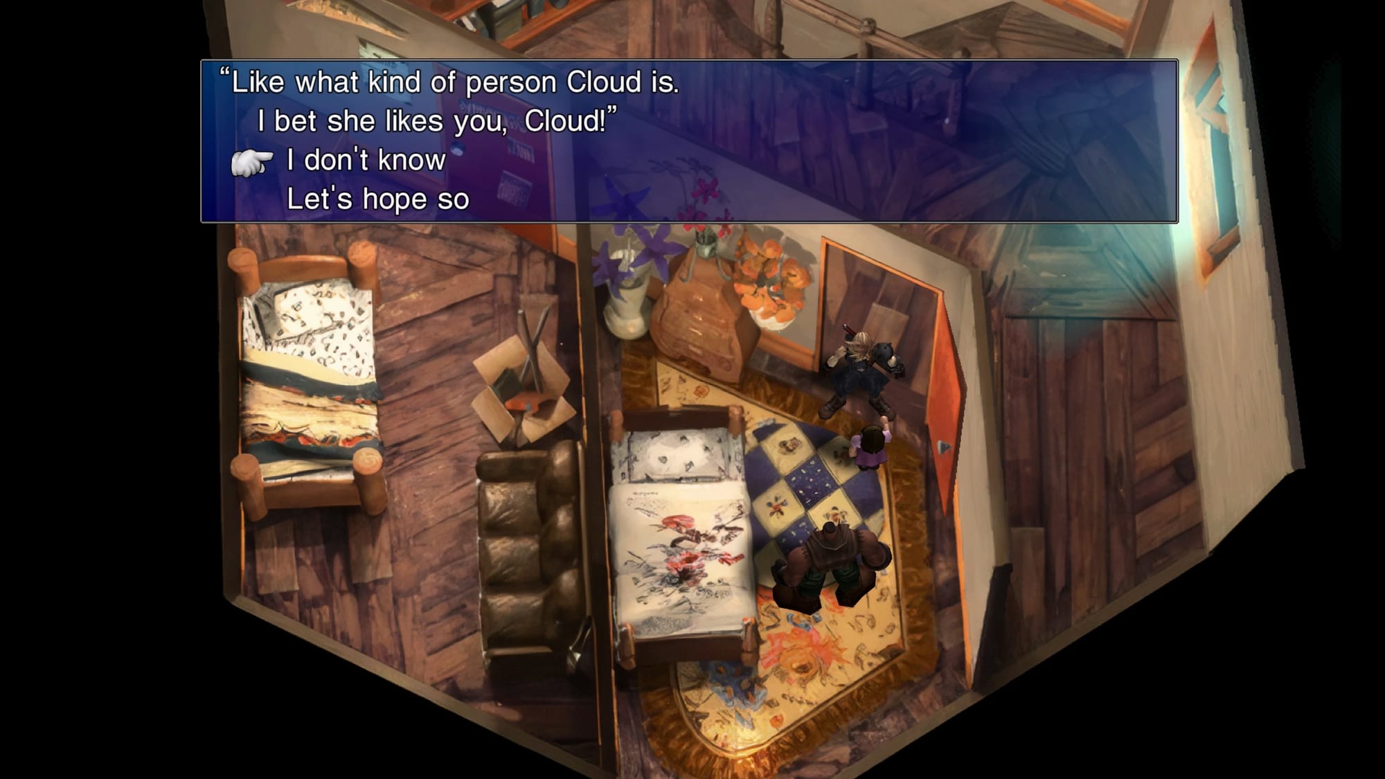 ▷ 잘 모르겠어. 에어리스와의 호감도 -3, 티파와의 호감도 +3 |