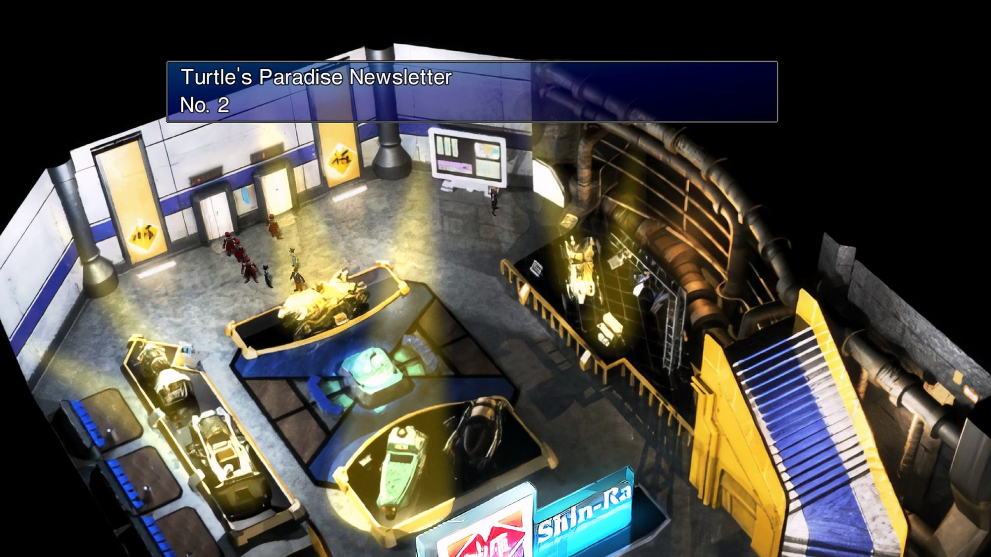 ▒ 경비병과 일행 사이에는 조각상들이 있는데 경비병이 우리쪽을 바라보지 않을 때 재빨리 조각상 사이를 통과해서 들키지 않게 오른쪽으로 진행하자. 반 정도 가면 클라우드가 다른 두 명에게 신호를 보낼 수 있는데 경비병이 돌아보지 않을 때마다 ○ 버튼을 눌러 한 명씩 오도록 하면 된다. 만일 경비병에게 발각되면 포위당한 채 전투가 벌어지며 처음부터 다시 통과해야 한다. 만일 여러번 계속 발각되면 경비병이 사라지고 바렛에게 한 소리 듣게 된다.