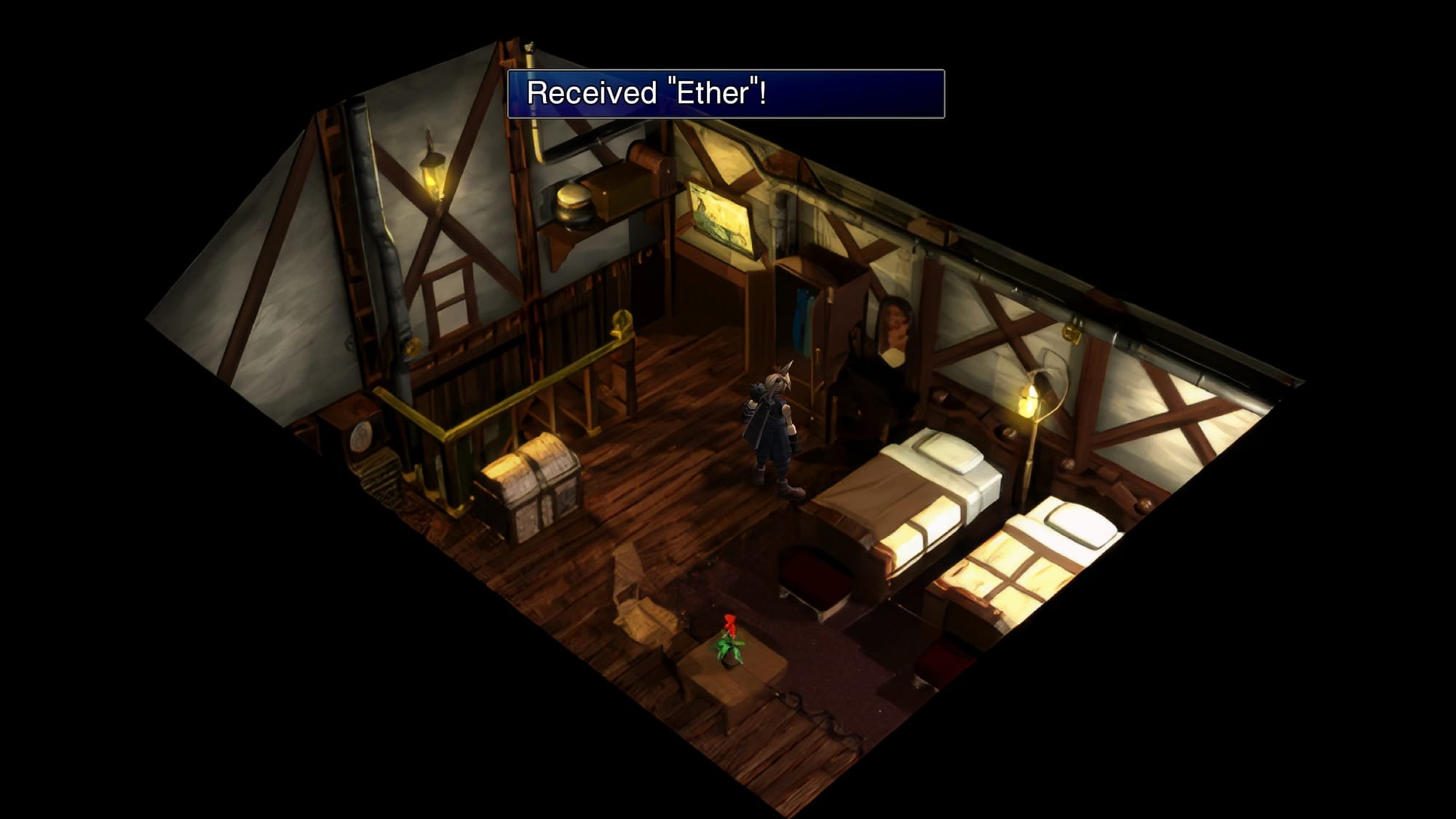 ▒ 이제 캄 마을을 돌아다녀 보자. 집 안을 돌아다니다 보면 에텔 3개, 가드 업(ガ-ドアップ, Guard Source), 빈센트의 무기인 피스메이커(ピ-スメ-カ-, Peacemaker)을 얻을 수 있다. 또한 피스메이커가 들어 있던 상자가 있는 곳에 창 밖을 조사하면 밖으로 내다볼 수도 있다. 마을 사람들과 대화해 보면 세피로스인 것으로 추정되는 자의 행방을 알 수 있다.