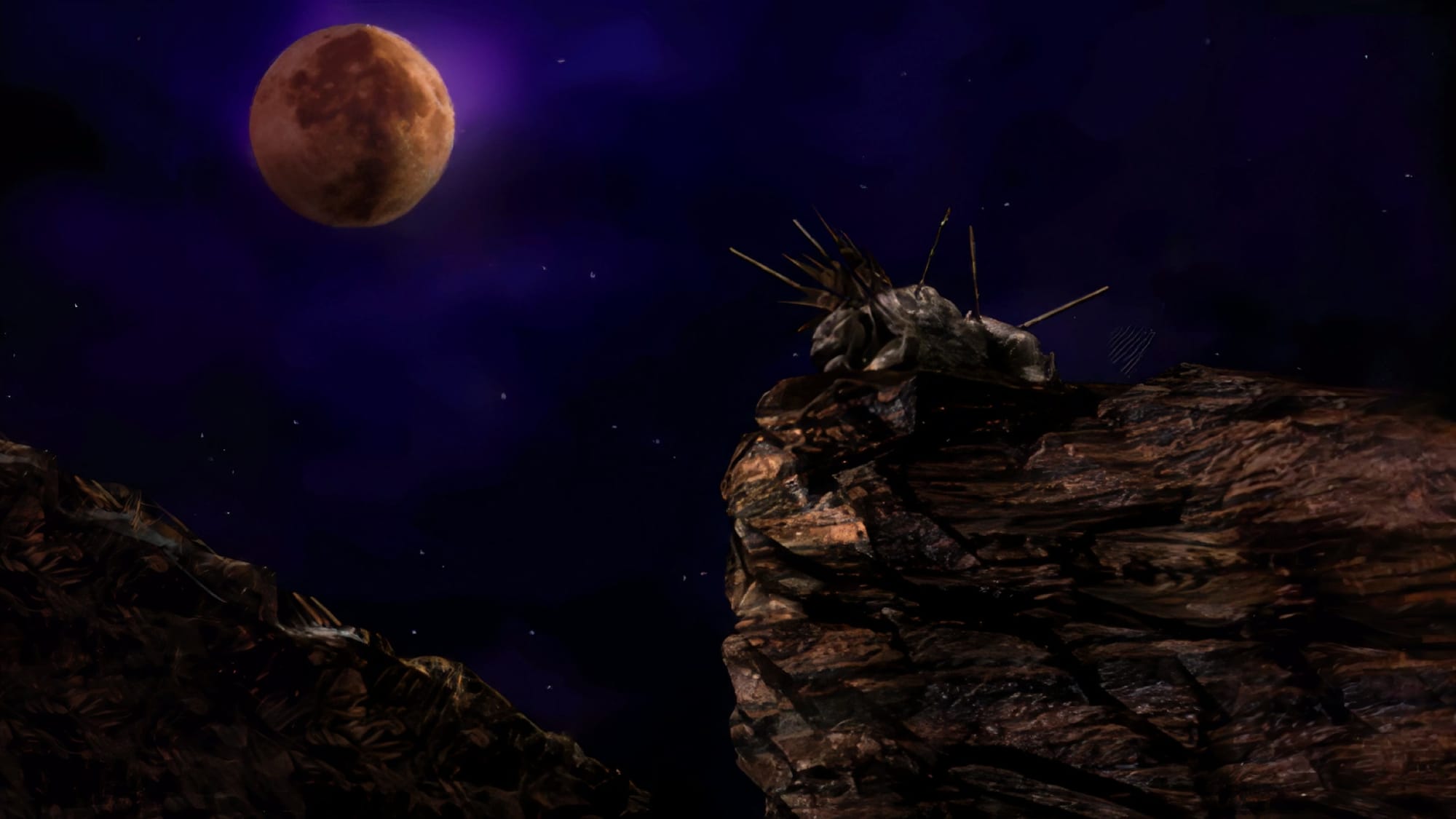 [절벽위에 화살을 맞고 돌이 되어 있는 세토의 모습이 보인다.]