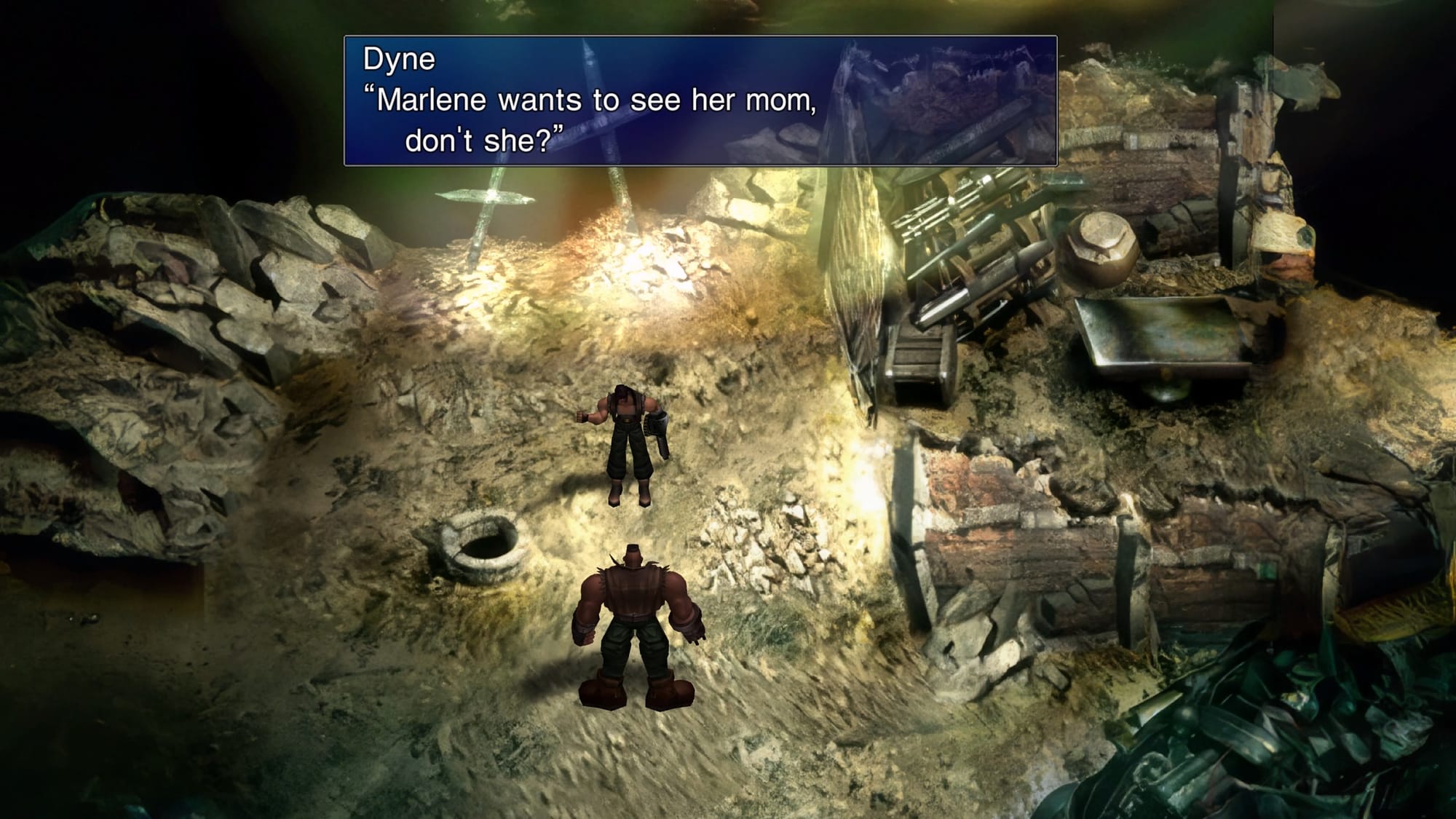 ▒ 두 번째 답을 선택하면 안에서 타이탄(タイタン, Titan) 마테리아를 얻을 수 있다. 이 마황로에서 더 이상 볼일은 없으니 레노, 루드와 싸웠던 곳으로 돌아와 왼쪽길로 가 보자. 도착한 곳의 갈림길 근처 바닥에서 필살(ひっさつ, Death Blow) 마테리아를 얻은 후 오른쪽길을 통해 마을로 들어가자. 코렐 마을과 비슷할 정도로 쇠약해진 마을이 나타난다. 그 뒤로는 방금 갔던 폐허가 된 마황로가 보이는데…