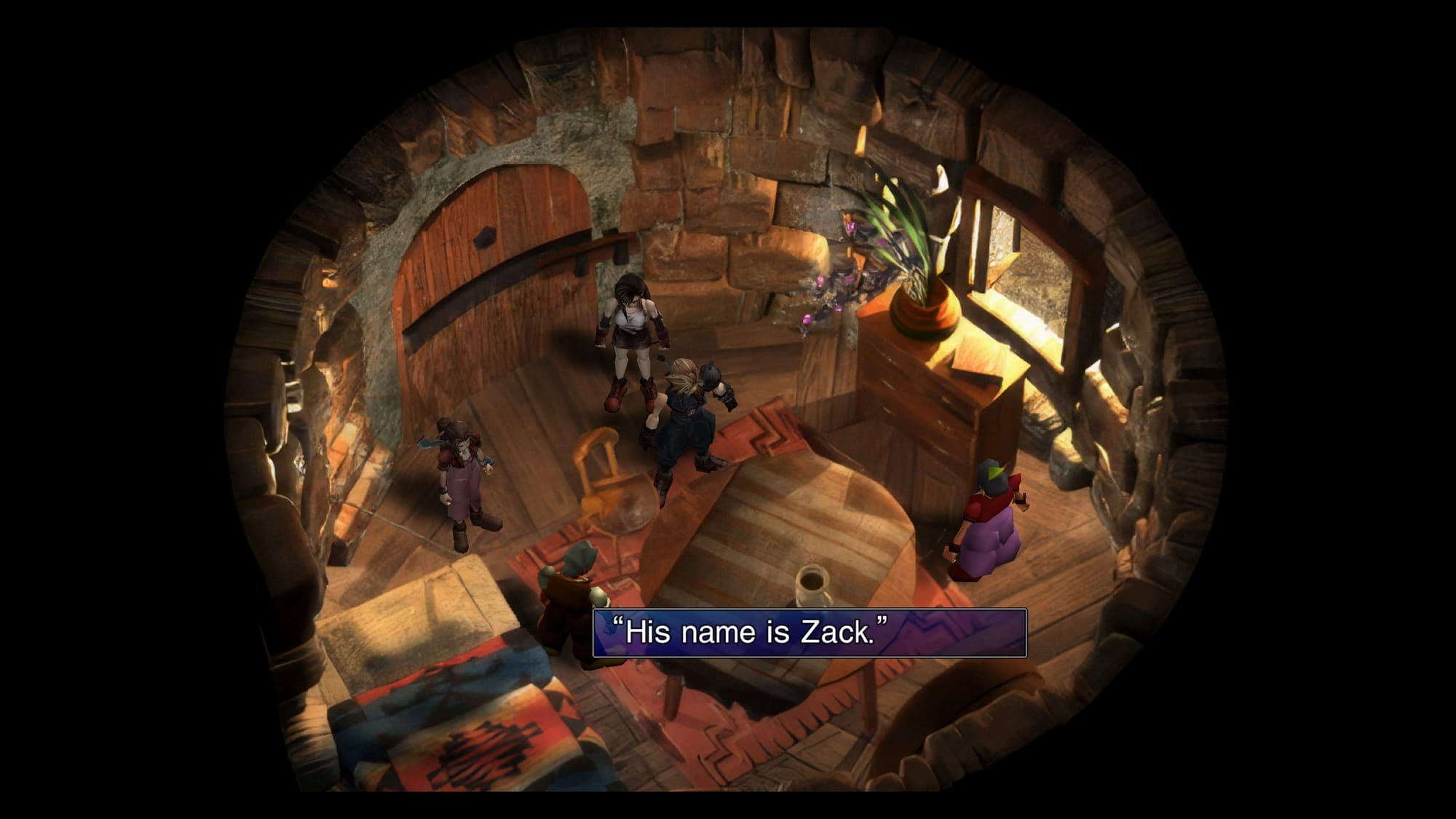 ▒ 클라우드, 바렛은 고정이고 함께 다인을 만나러 갈 사람을 한 명 더 정하자. 에어리스를 택하면 에어리스와의 호감도가 10 증가하고 티파를 택하면 티파와의 호감도가 3 증가하고 유피를 택하면 유피와의 호감도가 3 증가한다. 정비가 끝났다면 집에서 나가자. 참고로 집에서 오른쪽 입구를 통해 나가 맵 가장 오른쪽 하단의 집 안으로 들어가면 상점을 이용할 수 있다.