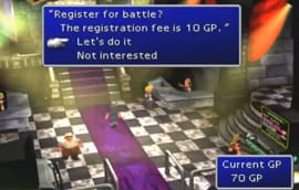 배틀에 참가하려면 투기장의 입구에서 참가 신청을 해야하며 신청비는 10 GP다.
